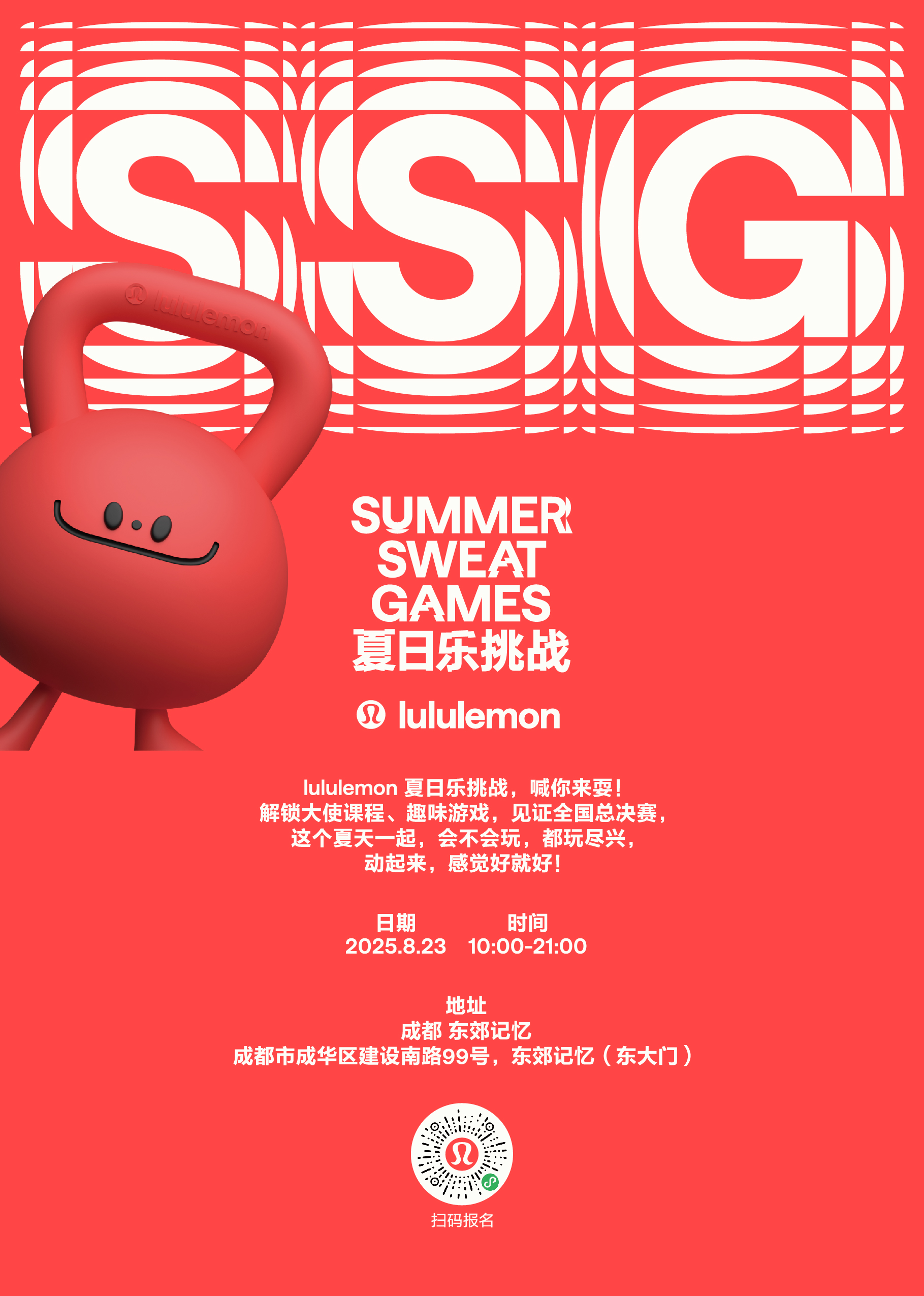 以“夏日乐挑战”总决赛为契机,lululemon通过融合在地文化、趣味竞技与全民参与的创新形式,重新定义运动与城市的共生关系,为后世运时代的成都注入“玩出本真”的运动精神。8月23日,lululemon将为热爱运动的成都市民打造一个“好耍运动场”,结合成都在地化元素,“深海行船”“球球齐接招”“智推十三幺”“跷板夺铃”“骑魂觉醒时”等兼具趣味和挑战的项目邀你玩到尽兴。同时,在“夏练能量场”将由lululemon大使带来巴适拉伸、战术棒铃、燃动热舞、徒手体能挑战等丰富课程,带领更多人释放夏日能量,感受运动带来的快乐,一起玩到尽兴!这些设计不仅展现了运动形式的多样性,更通过社区互动传递出“动起来,感觉好就好”的运动理念。